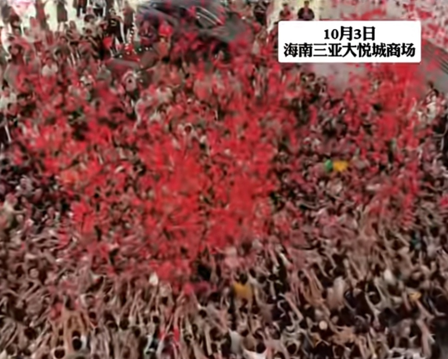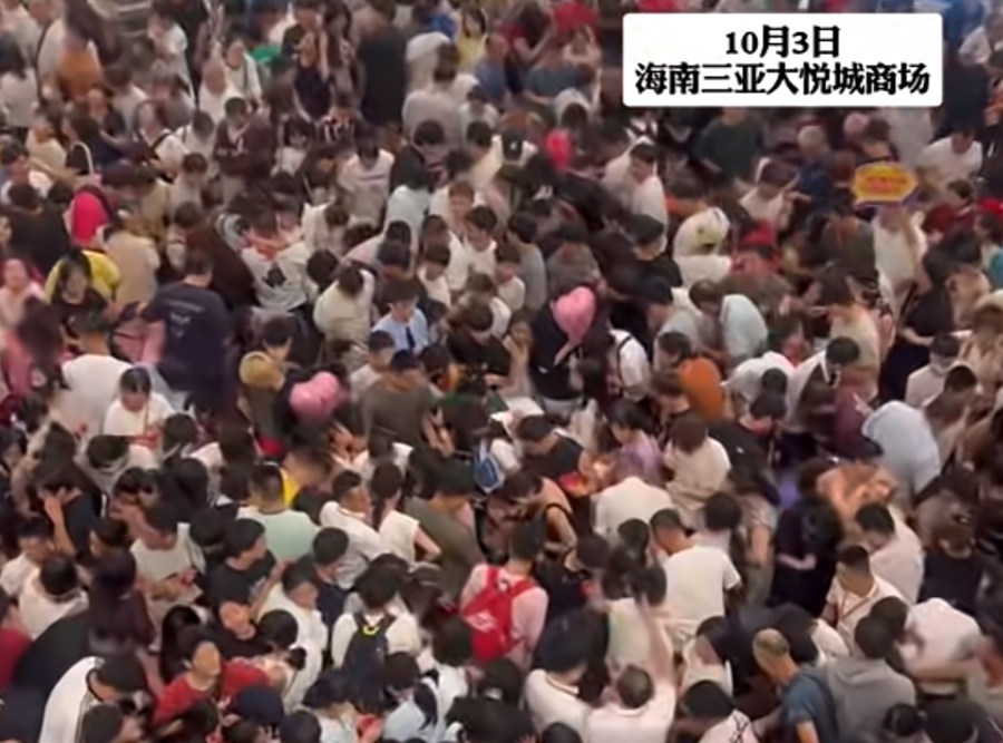 10月3日,海南三亚大悦城商场在举办周年庆“天降红包雨”活动时,现场出现严重拥挤,视频中能看到至少有数百人在商场大厅争抢红包。